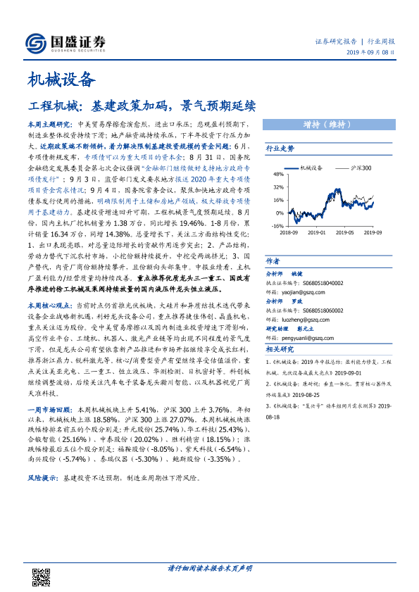 【国盛证券】【20190908】20190908-国盛证券-机械设备行业周报:工程机械:基建政策加码,景气预期延续-14页
