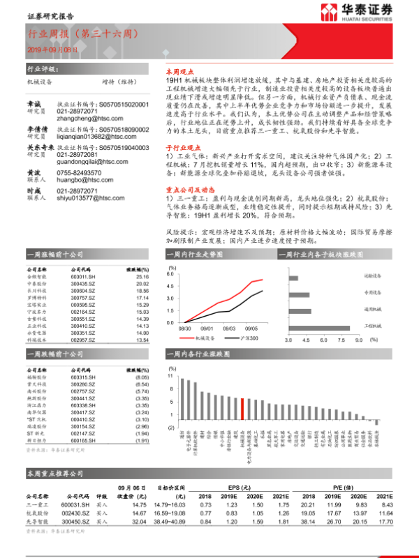 【华泰证券】【20190908】20190908-华泰证券-机械设备行业周报(第三十六周)-10页