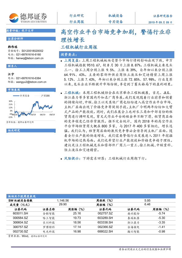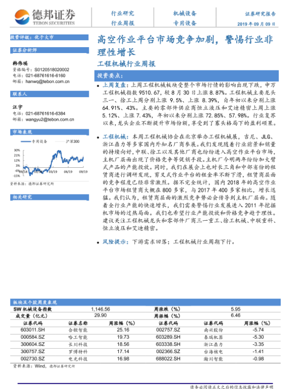 【德邦证券】【20190909】20190909-德邦证券-工程机械行业周报:高空作业平台市场竞争加剧,警惕行业理性增长-7页