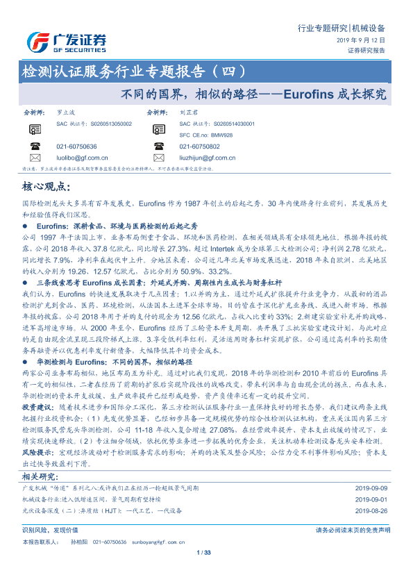 【广发证券】【20190912】不同的国界,相似的路径——Eurofins成长探究-33页