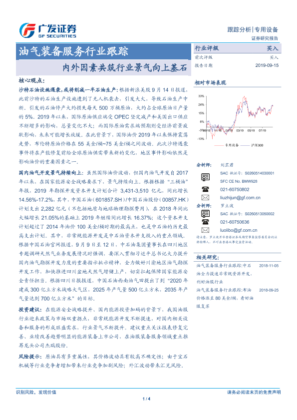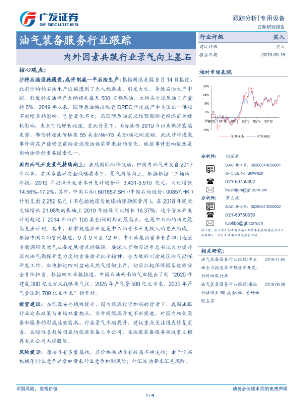 【广发证券】【20190915】油气装备服务行业跟踪:内外因素共筑行业景气向上基石-4页