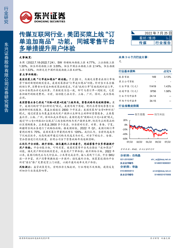 【东兴证券】【20220725】传媒互联网行业:美团买菜上线“订单追加商品”功能,同城零售平台多举措提升用户体验-15页