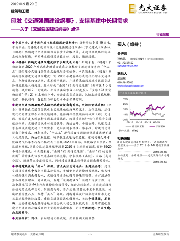 【光大证券】【20190920】关于《交通强国建设纲要》点评:印发《交通强国建设纲要》,支撑基建中长期需求-3页