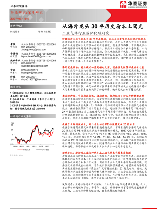 【华泰证券】【20190919】工业气体行业国际比较研究:从海外龙头30年历史看本土曙光-24页