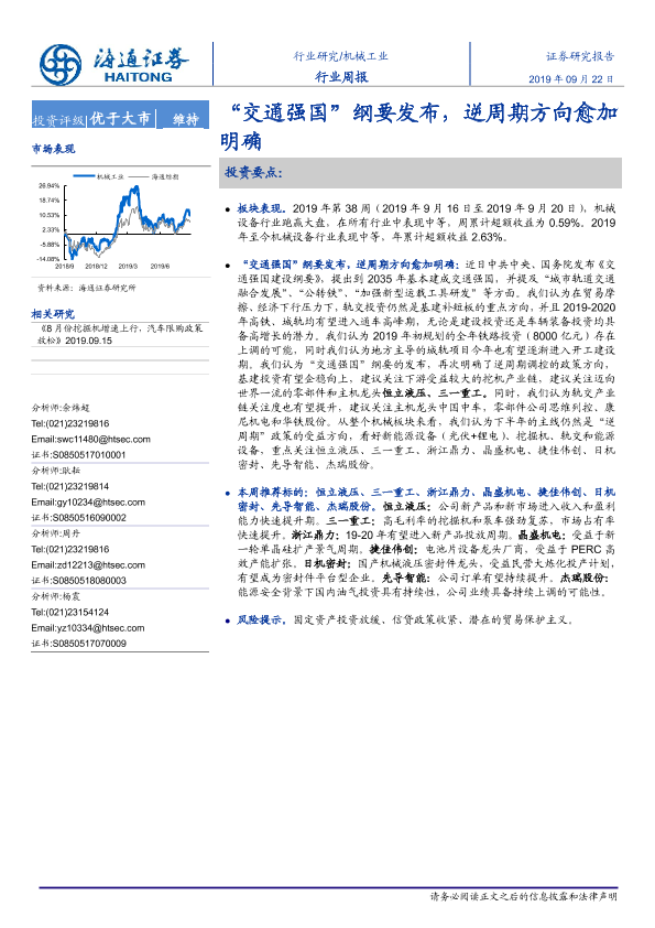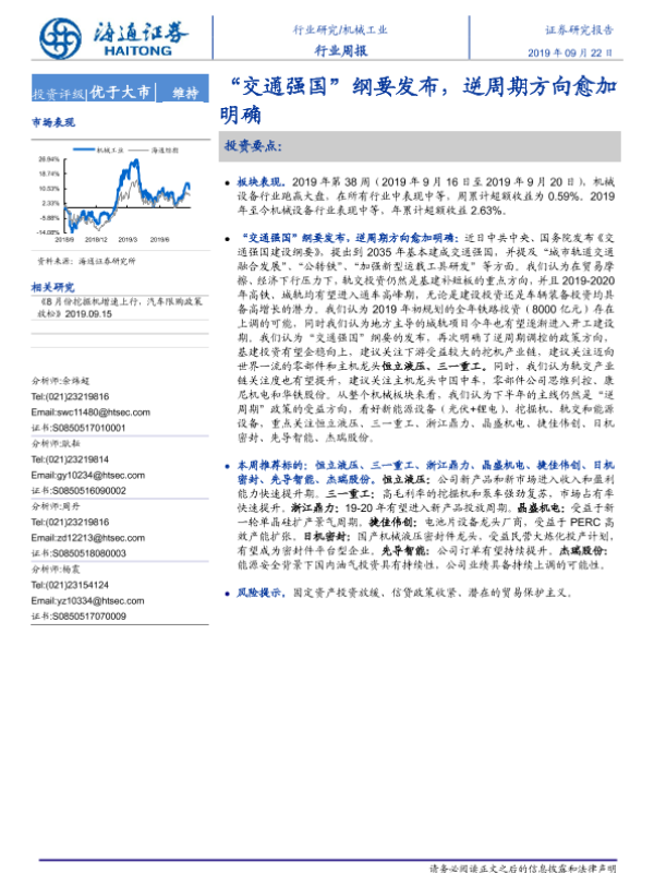【海通证券】【20190922】20190922-海通证券-机械工业行业周报:“交通强国”纲要发布,逆周期方向愈加明确-10页