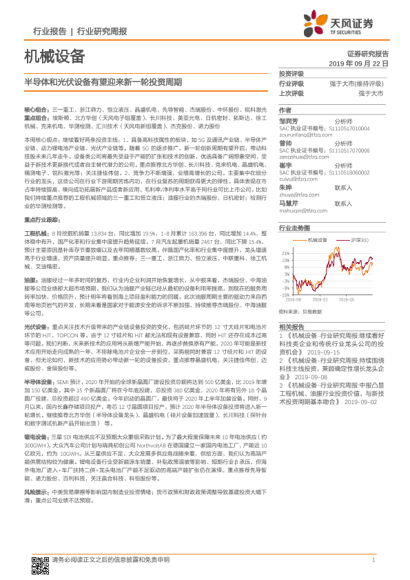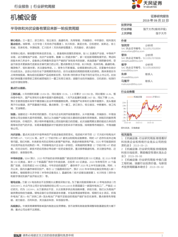 【天风证券】【20190922】20190922-天风证券-机械设备行业研究周报:半导体和光伏设备有望迎来新一轮投资周期-15页