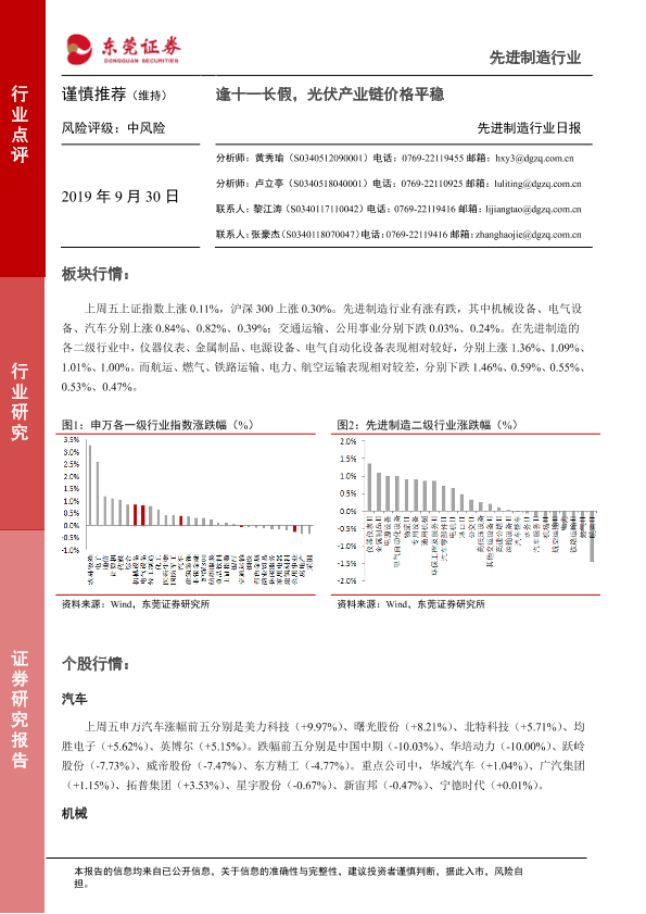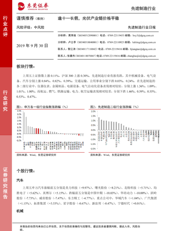 【东莞证券】【20190930】先进制造行业日报:逢十一长假,光伏产业链价格平稳-5页