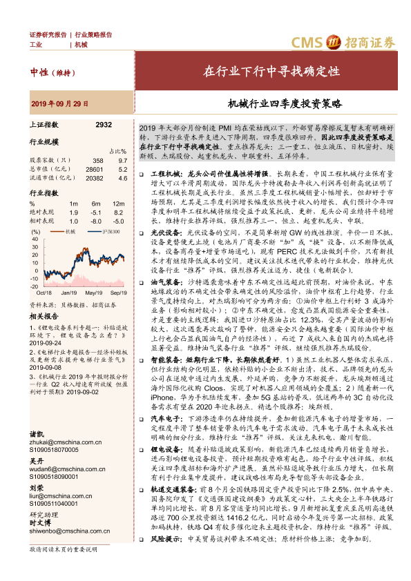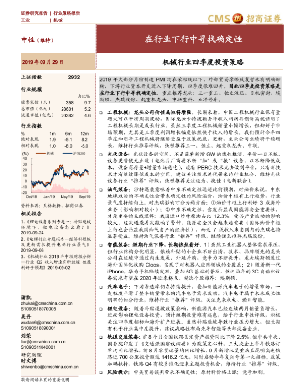 四季度展望 投资策略 机械行业 确定性 行业下行
