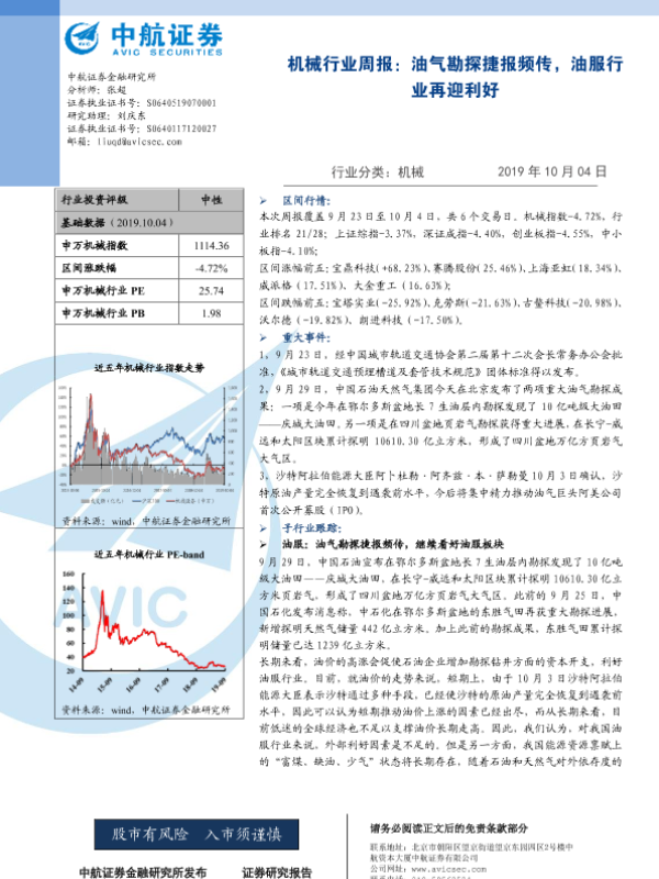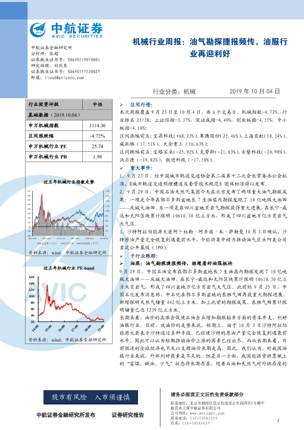 【中航证券】【20191004】机械行业周报:油气勘探捷报频传,油服行业再迎利好-3页
