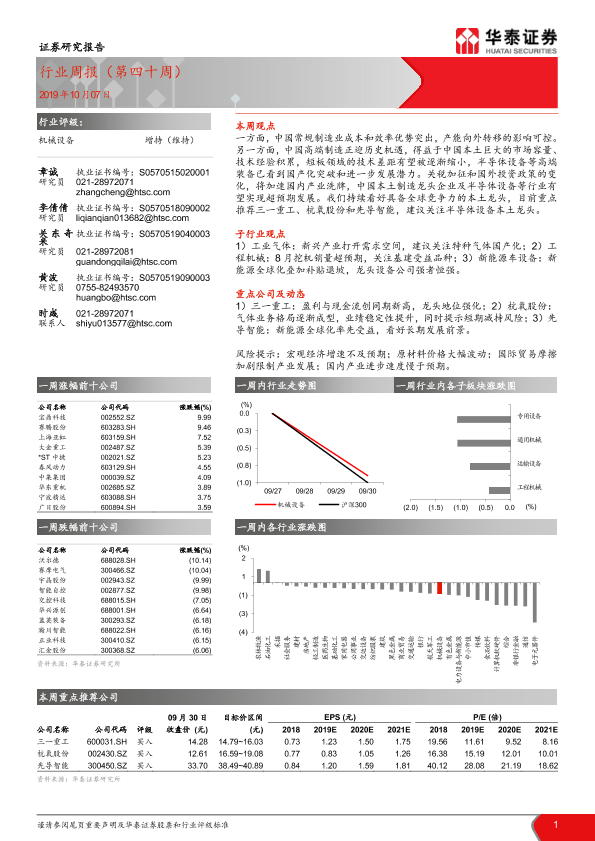 【华泰证券】【20191007】20191007-华泰证券-机械设备行业周报(第四十周)-10页