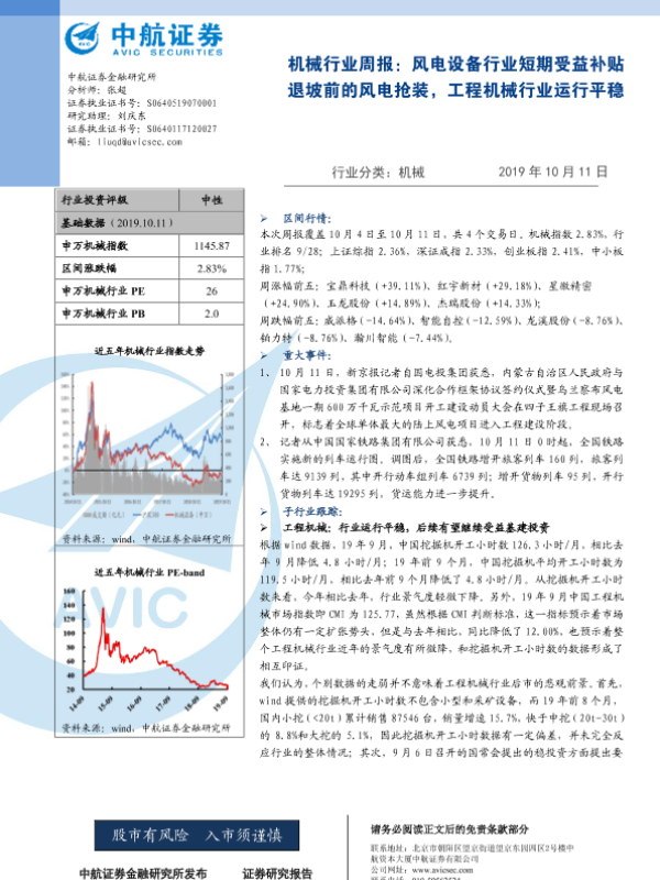 【中航证券】【20191011】机械行业周报:风电设备行业短期受益补贴退坡前的风电抢装,工程机械行业运行平稳-3页