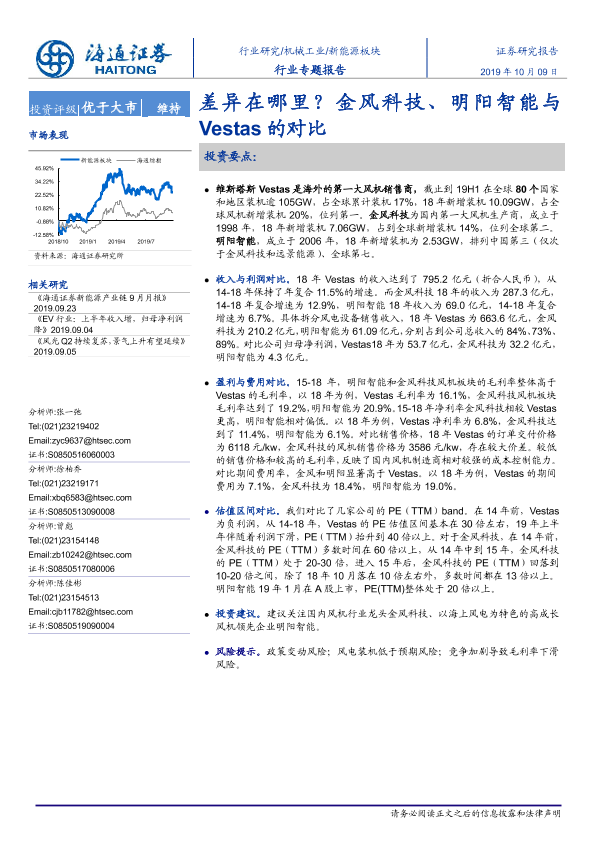 【海通证券】【20191009】机械工业行业专题报告:差异在哪里?金风科技、明阳智能与Vestas的对比-18页
