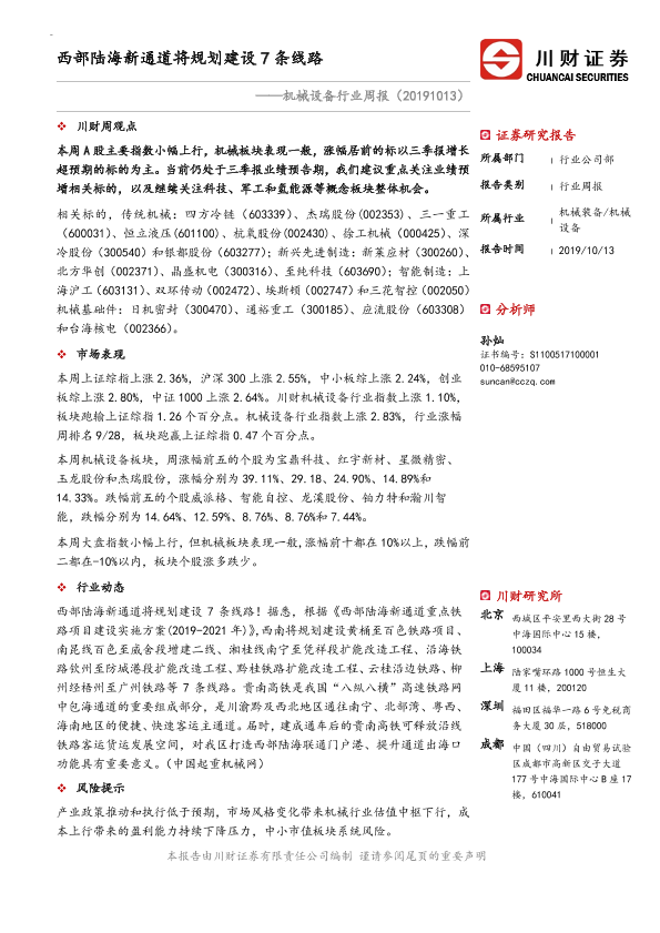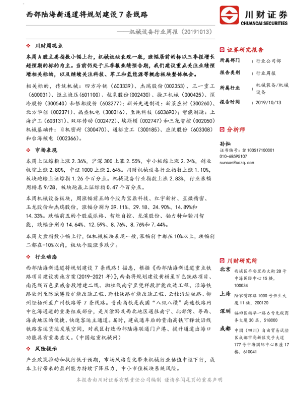【川财证券】【20191013】机械设备行业周报:西部陆海新通道将规划建设7条线路-8页