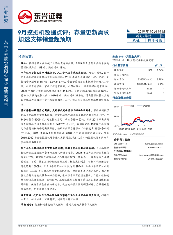 【东兴证券】【20191014】9月挖掘机数据点评:存量更新需求加速支撑销量超预期-4页