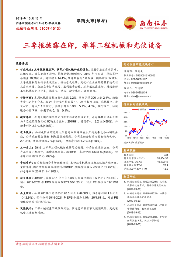 【西南证券】【20191013】20191013-西南证券-机械行业周报:三季报披露在即,推荐工程机械和光伏设备-8页