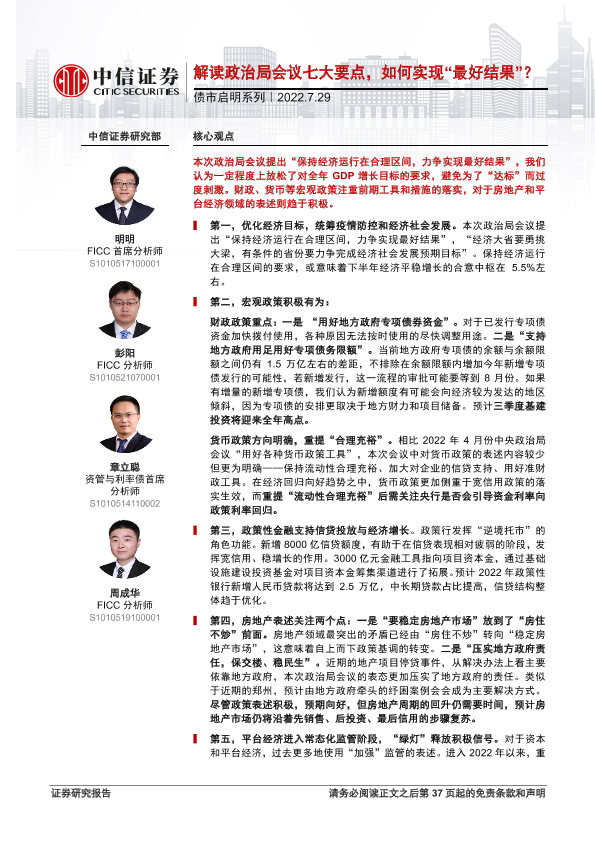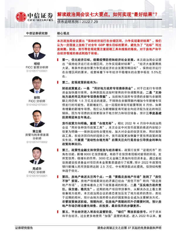 【中信证券】【20220729】债市启明系列:解读政治局会议七大要点,如何实现“最好结果”?-38页
