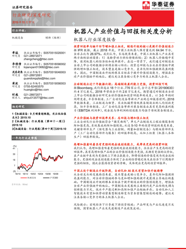 【华泰证券】【20191017】机器人行业深度报告:机器人产业价值与回报相关度分析-21页