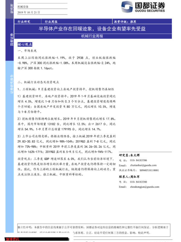 【国都证券】【20191021】20191021-国都证券-机械行业周报:半导体产业存在回暖迹象,设备企业有望率先受益-3页