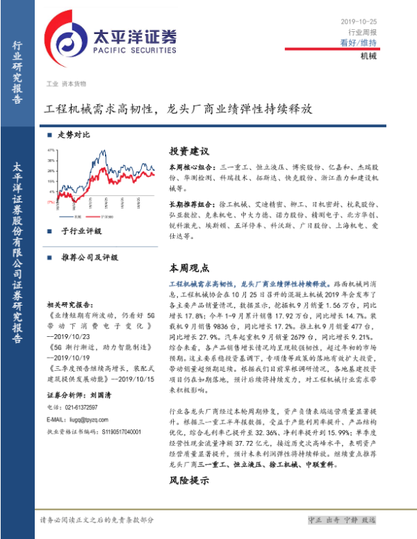 【太平洋证券】【20191025】20191025-太平洋-机械行业周报:工程机械需求高韧性,龙头厂商业绩弹性持续释放-13页