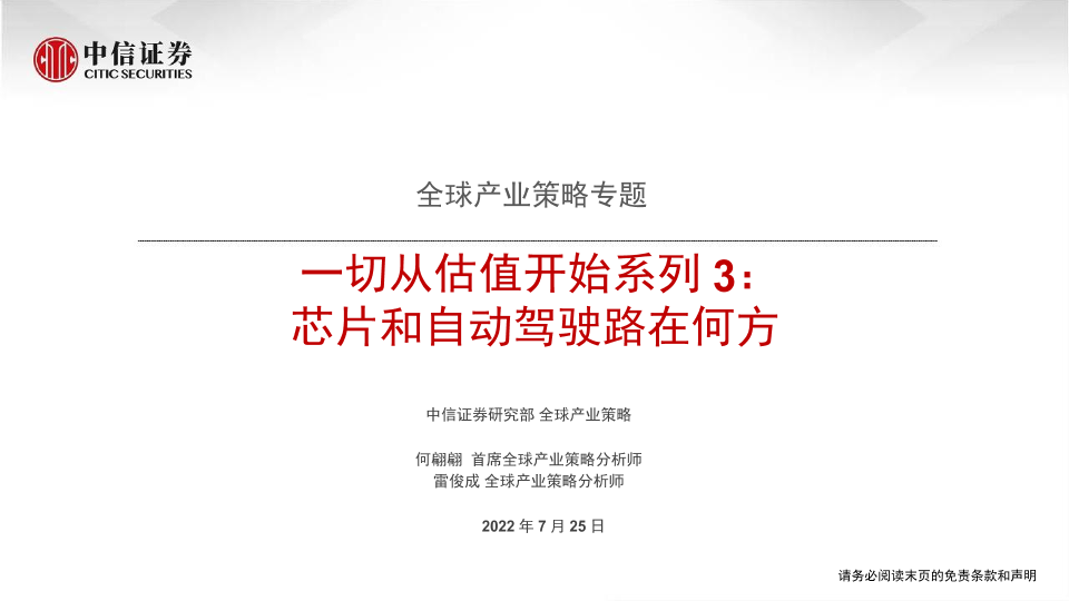 【中信证券】【20220725】全球产业策略专题:一切从估值开始系列3,芯片和自动驾驶路在何方-85页
