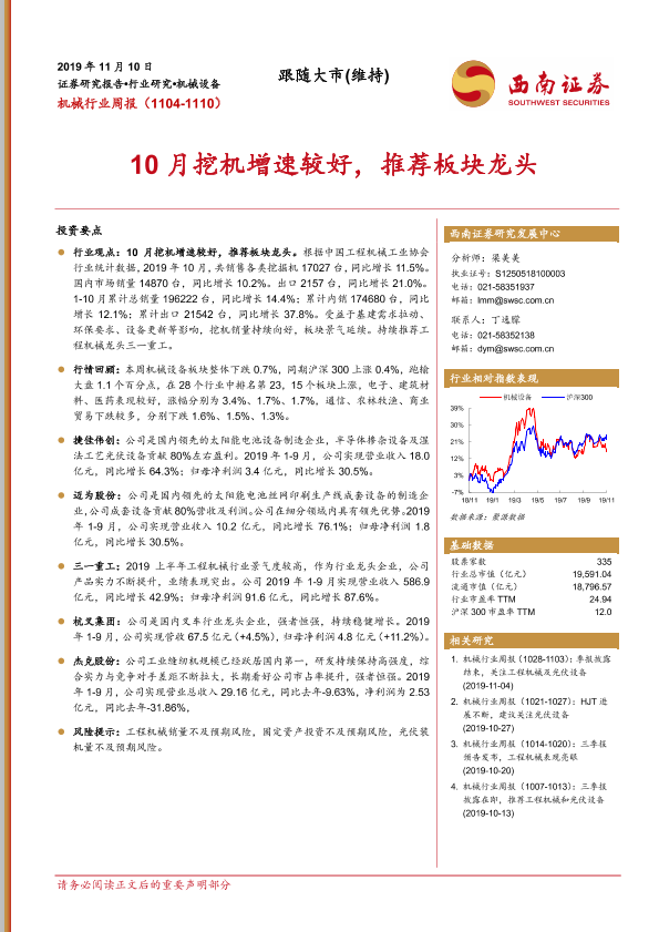 【西南证券】【20191110】机械行业周报:10月挖机增速较好,推荐板块龙头-8页