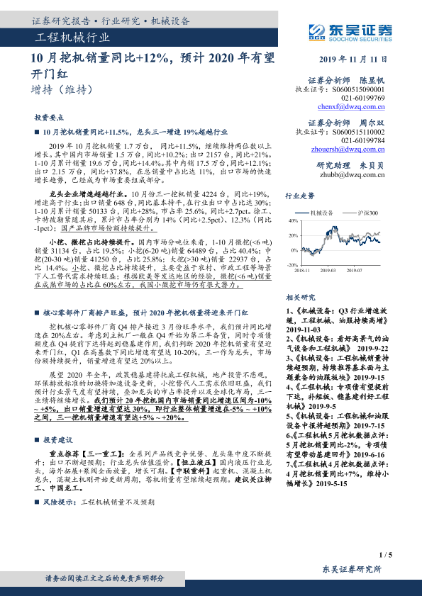 【东吴证券】【20191111】工程机械行业点评报告:10月挖机销量同比+12%,预计2020年有望开门红-5页