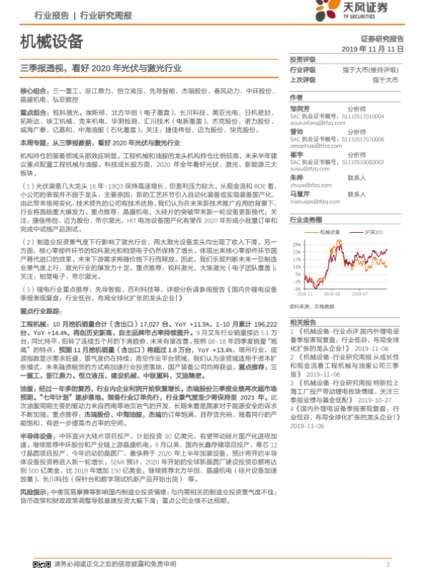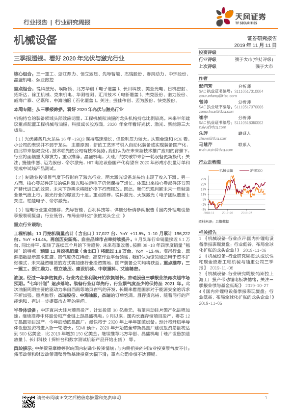 【天风证券】【20191111】20191111-天风证券-机械设备行业研究周报:三季报透视,看好2020年光伏与激光行业-14页