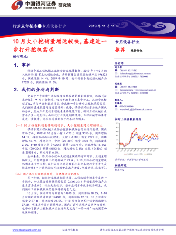 【银河证券】【20191111】专用设备行业:10月大小挖销量增速较快,基建进一步打开挖机需求-4页