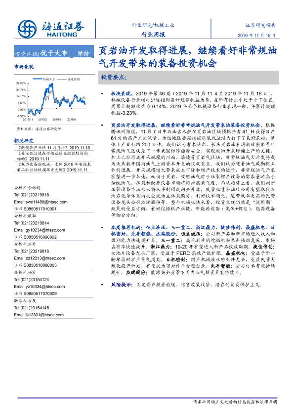 【海通证券】【20191118】20191118-海通证券-机械工业行业周报:页岩油开发取得进展,继续看好非常规油气开发带来的装备投资机会-10页