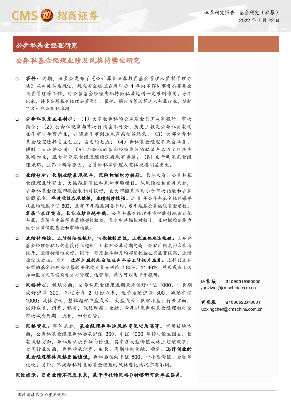 【海通证券】【20220722】公奔私基金经理业绩及风格持续性研究-29页