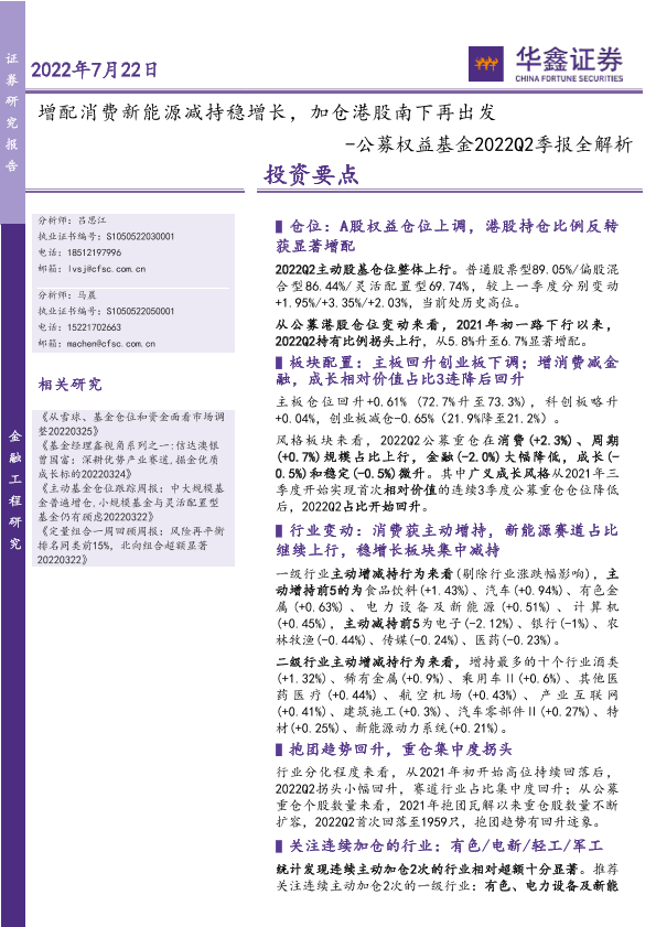 【华鑫证券】【20220722】公募权益基金2022Q2季报全解析:增配消费新能源减持稳增长,加仓港股南下再出发-18页