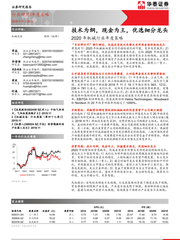 【华泰证券】【20191126】2020年机械行业年度策略:技术为纲,现金为王,优选细分龙头-31页