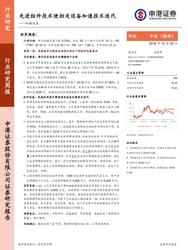 【申港证券】【20191202】机械设备行业研究周报:先进组件技术使相关设备加速技术迭代-16页