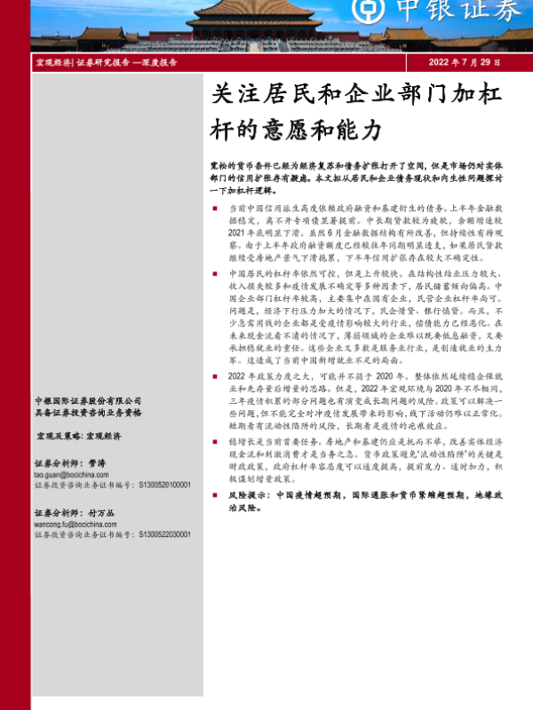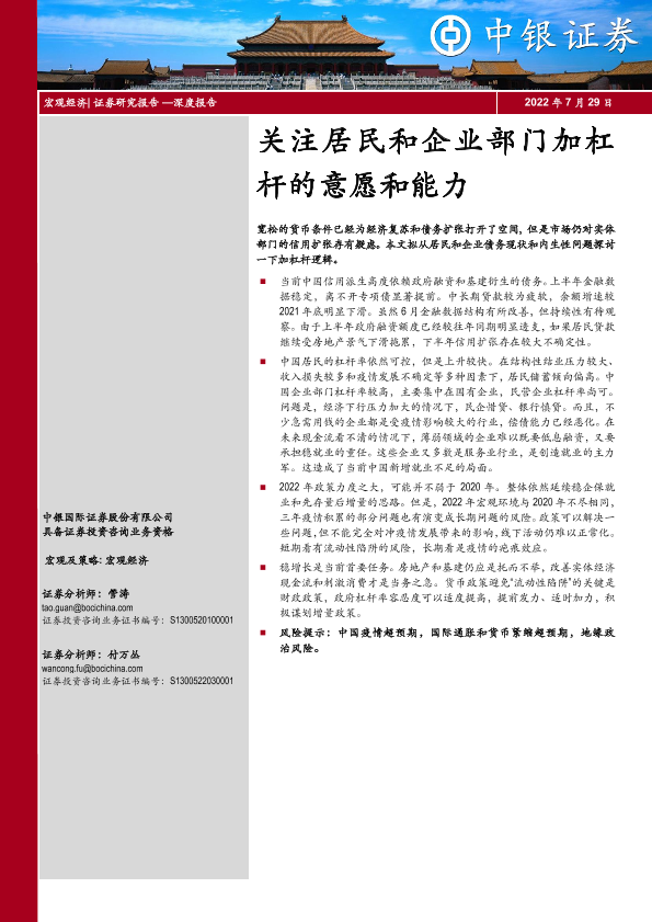 【中银证券】【20220729】关注居民和企业部门加杠杆的意愿和能力-18页