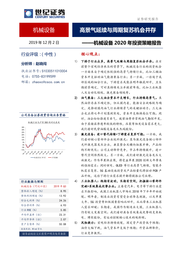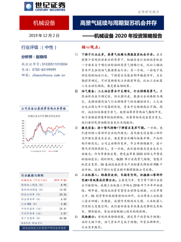 【世纪证券】【20191202】机械设备2020年投资策略报告:高景气延续与周期复苏机会并存-29页