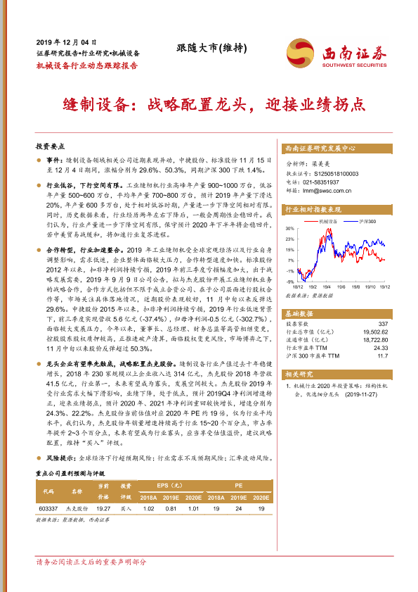 【西南证券】【20191204】缝制设备:战略配置龙头,迎接业绩拐点-3页