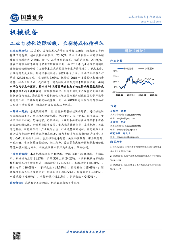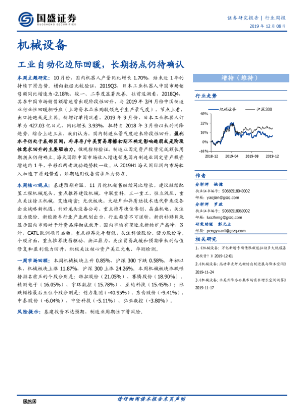 【国盛证券】【20191208】20191208-国盛证券-机械设备行业周报:工业自动化边际回暖,长期拐点仍待确认-13页