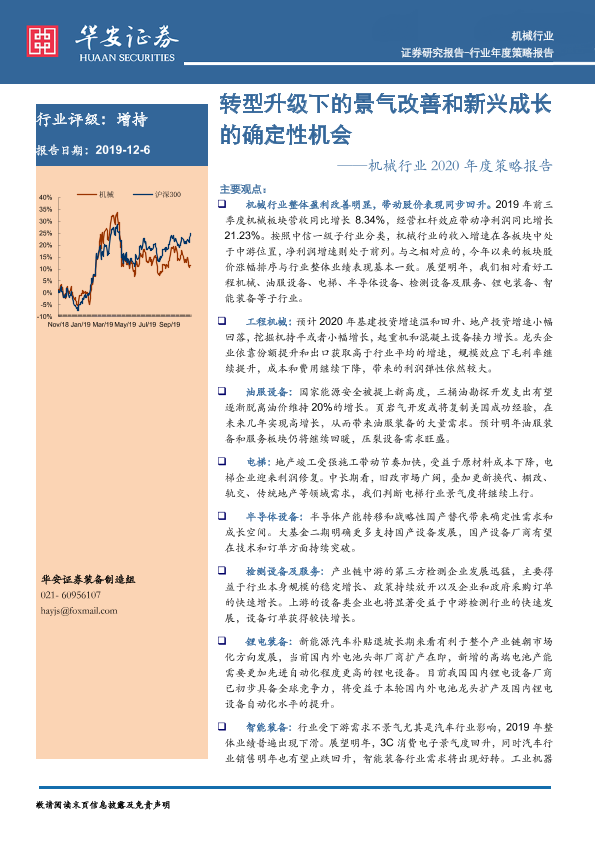 【华安证券】【20191206】机械行业2020年度策略报告:转型升级下的景气改善和新兴成长的确定性机会-58页