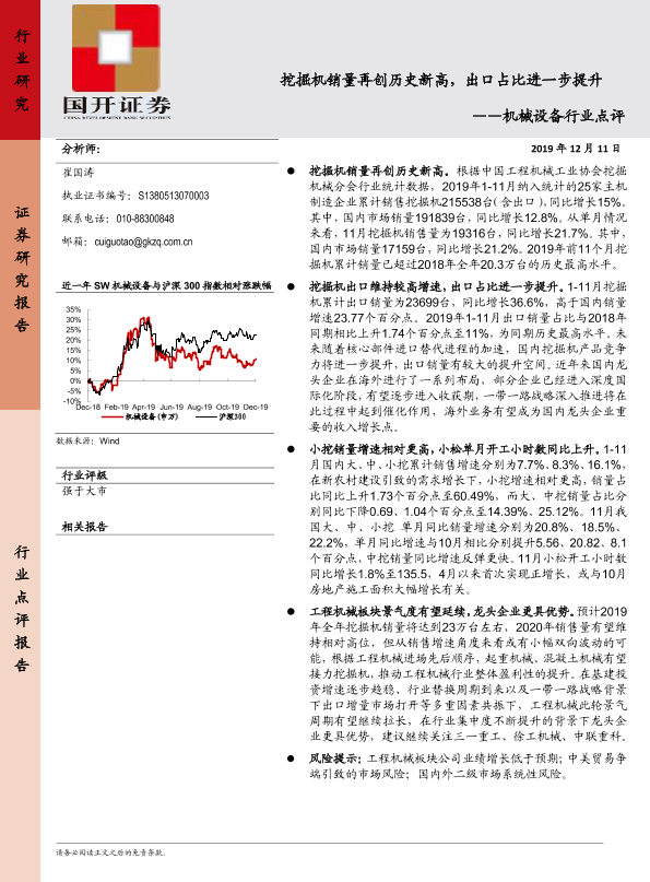 【国开证券】【20191211】机械设备行业点评:挖掘机销量再创历史新高,出口占比进一步提升-4页