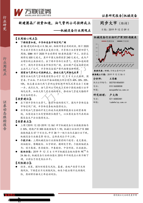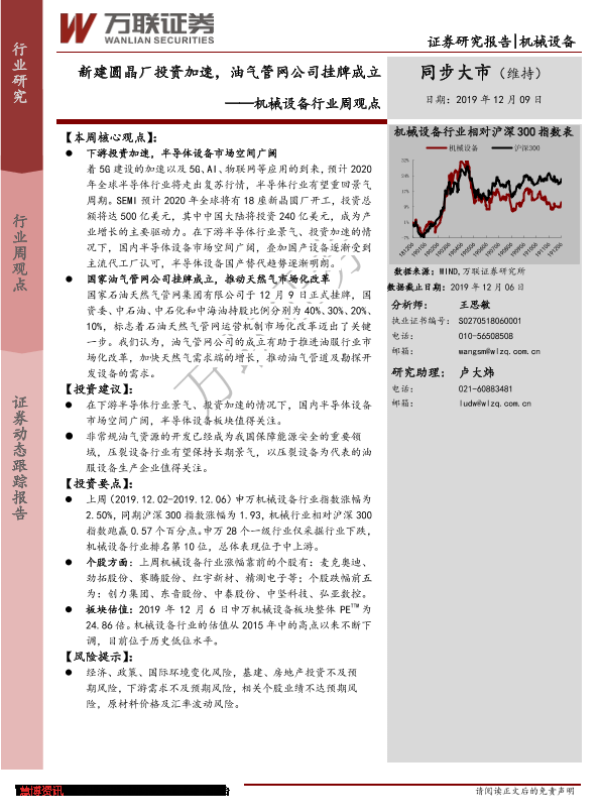 【万联证券】【20191209】20191209-万联证券-机械设备行业周观点:新建圆晶厂投资加速,油气管网公司挂牌成立-10页