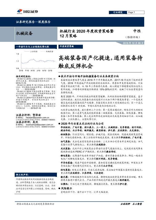 【国信证券】【20191206】机械行业2020年度投资策略暨12月策略:高端装备国产化提速,通用装备待触底反弹机会-90页