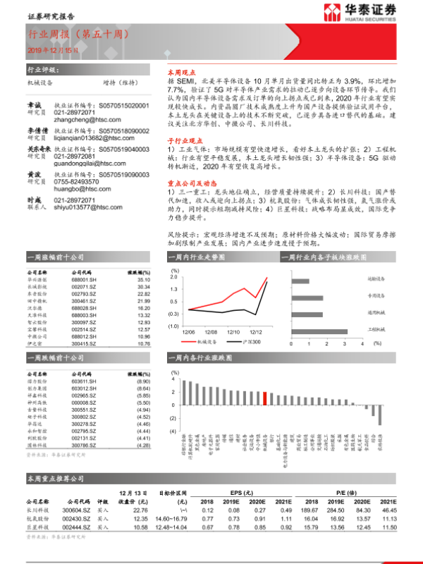【华泰证券】【20191215】20191215-华泰证券-机械设备行业周报(第五十周)-11页