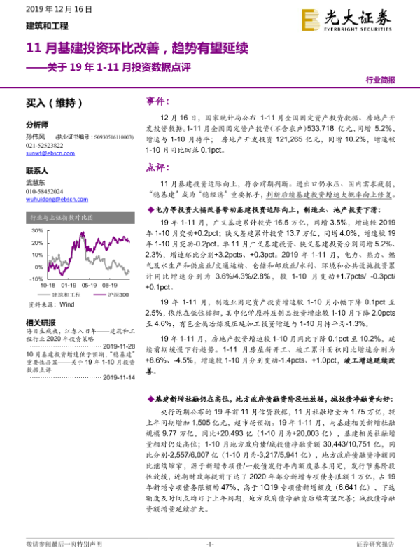 【光大证券】【20191216】建筑和工程关于19年1-11月投资数据点评:11月基建投资环比改善,趋势有望延续-5页