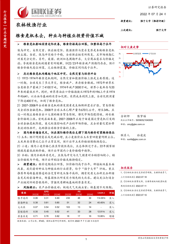 【国联证券】【20220724】农林牧渔行业:粮食危机未去,种业与种植业投资价值不减-31页
