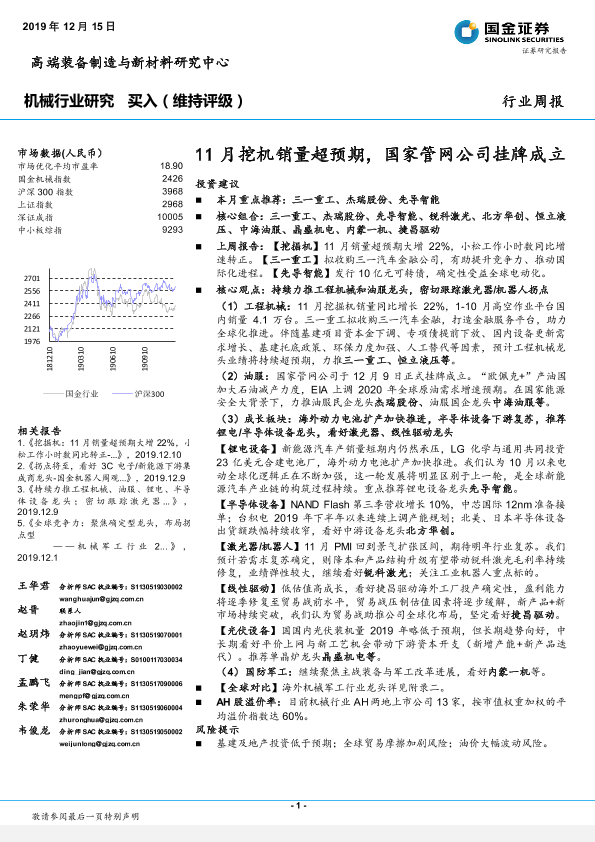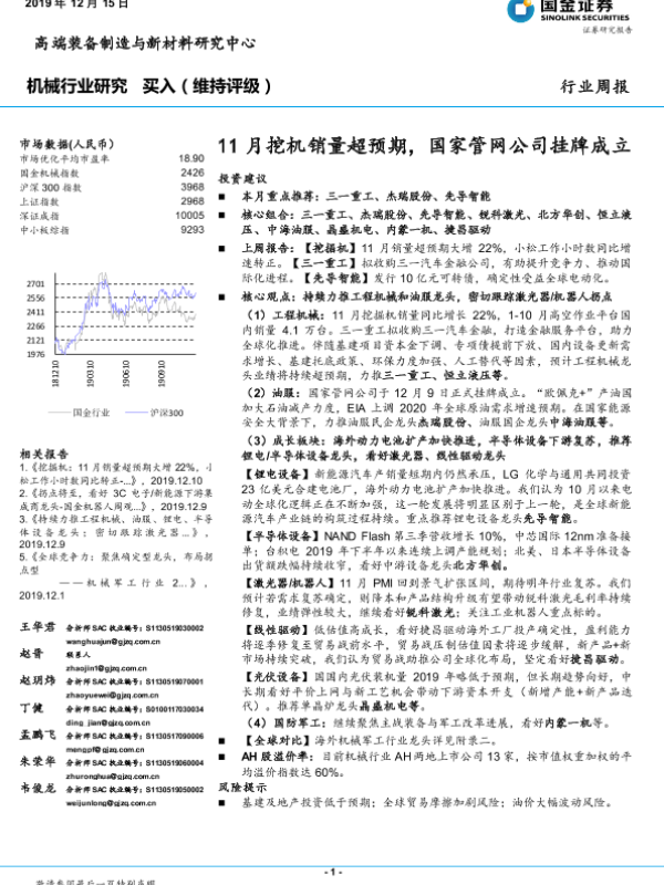 【国金证券】【20191215】20191215-国金证券-机械行业研究周报:11月挖机销量超预期,国家管网公司挂牌成立-22页