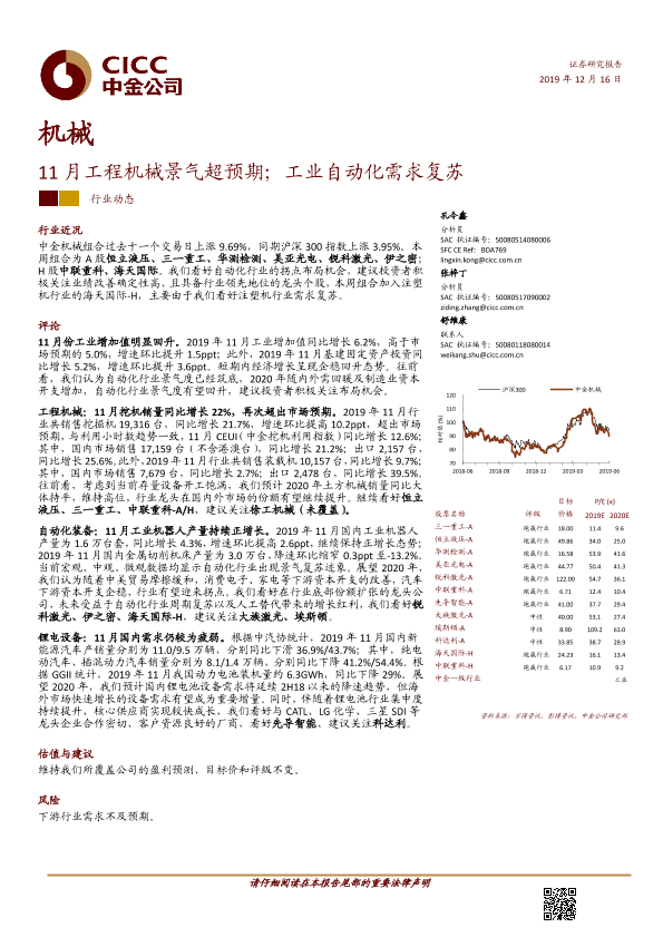 【中金公司】【20191216】11月工程机械景气超预期;工业自动化需求复苏-12页