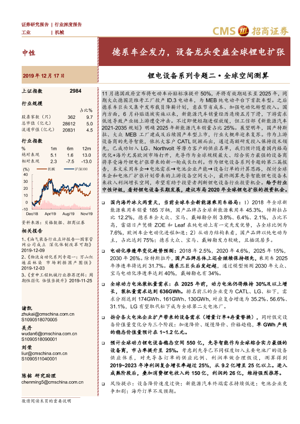 【海通证券】【20191217】锂电设备系列专题二·全球空间测算:德系车企发力,设备龙头受益全球锂电扩张-17页