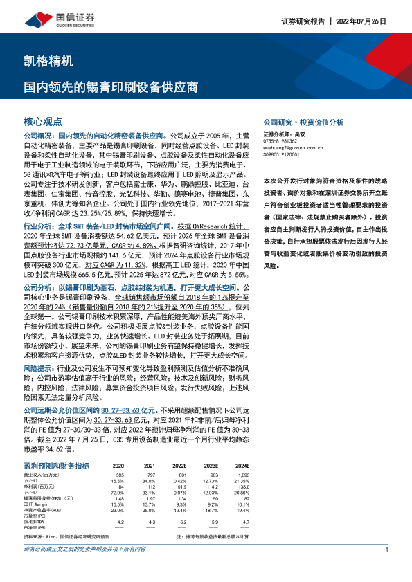 【国信证券】【20220726】凯格精机:国内领先的锡膏印刷设备供应商-67页