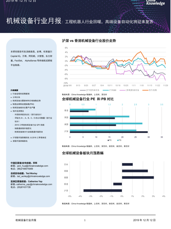 【China Knowledge】【20191212】机械设备行业月报:工程机器人行业回暖,高端设备自动化将迎来复苏-27页