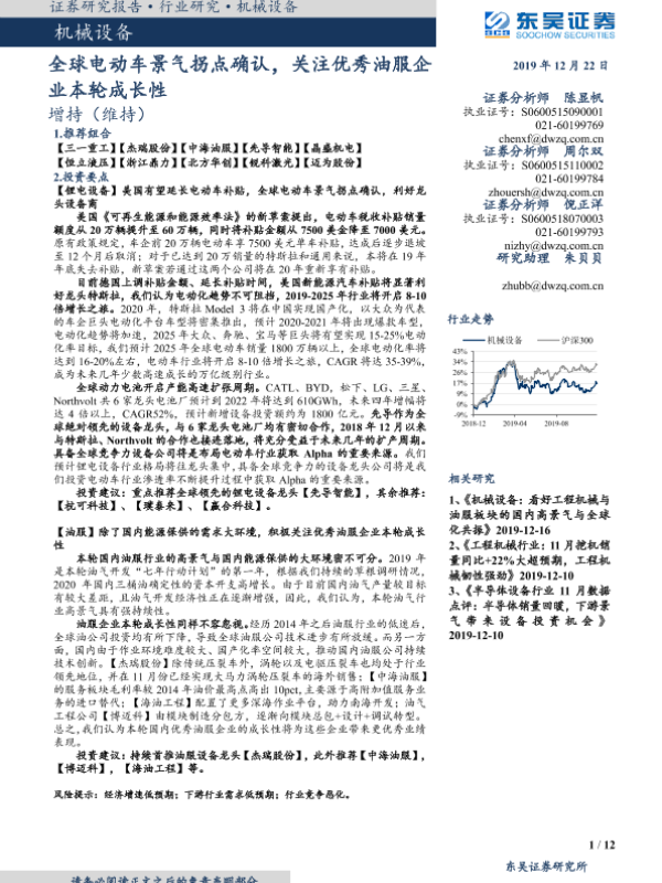【东吴证券】【20191222】全球电动车景气拐点确认,关注优秀油服企业本轮成长性-13页